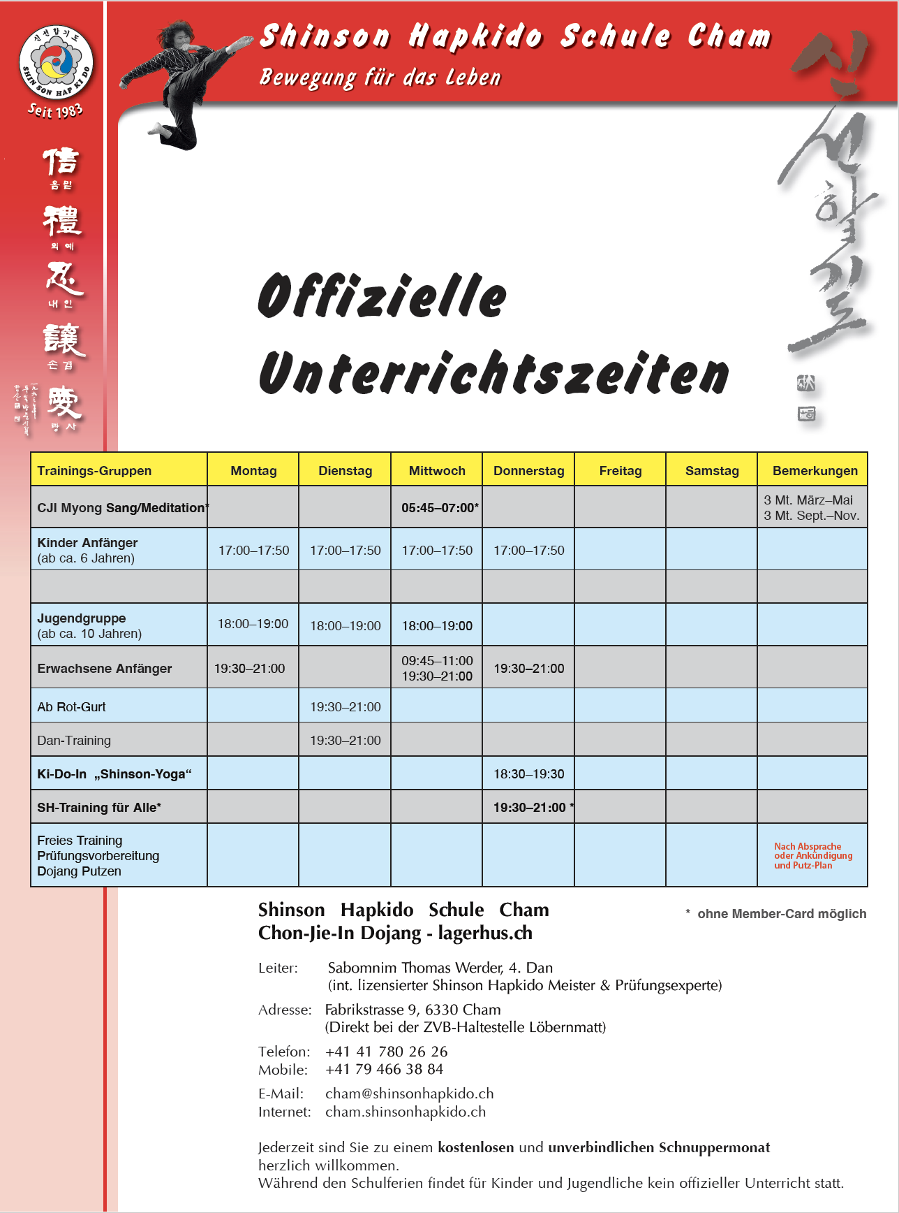 Kontakt: cham@shinsonhapkido.ch oder Mob. +41 79 466 38 84.