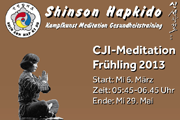 Ab Mittwoch den 6. März 2024 beginnt wieder die 3-monatige Frühlings-Meditation bis Ende Mai 2024. Jeweils am Mittwoch von 5.45 - 7.00 Uhr im Chon-Jie-In Dojang Cham, im Lagerhaus, an der Fabrikstrasse 9. Jede Person ist Herzlich Willkommen. Eine Mitgliedschaft ist nicht erforderlich und die Teilnahme ist kostenfrei (Spendenmöglichkeit).