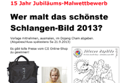 4.9.13 - Jubiläums-Malwettbewerb Wer malt das schönste Schlangenjahr-Bild 2013? Es gibt tolle Preise vom CJI Shop zu gewinnen!