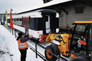 14.12.17- Medienmitteilung - Schwertransport Eisenbahn-Waggon auf das Chomer Papieri-Lagerhus Gleis. |
