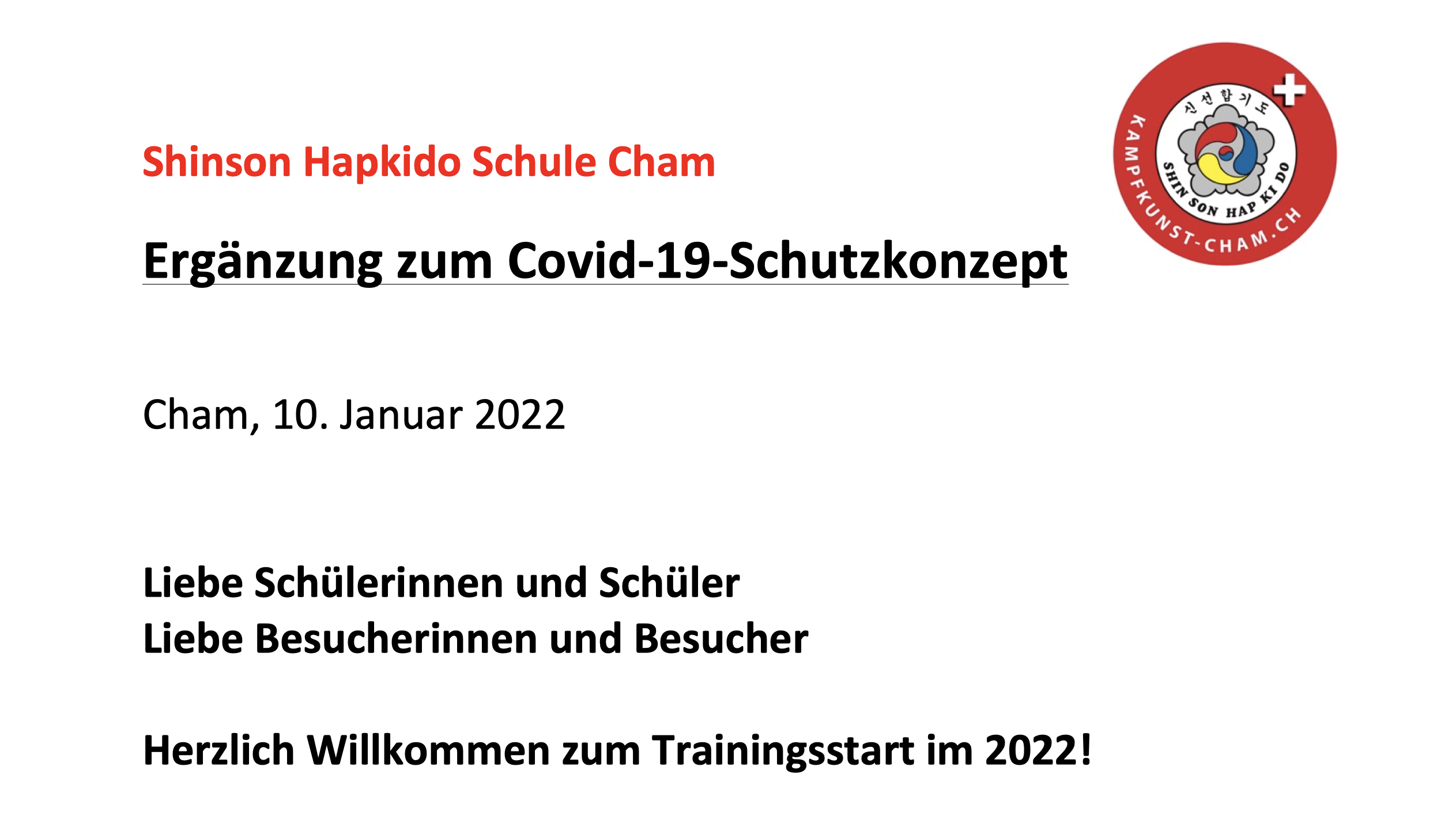 11.5.20 - Die Chomer Shinson Hapkido Schule ist nach dem vom Bundesrat verordneten Lockdown seit heute Montag wieder geöffnet. Das verlangte Schutzkonzept ist umgesetzt und wir unterrichten unser Shinson Hapkido Programm kontaktlos.
