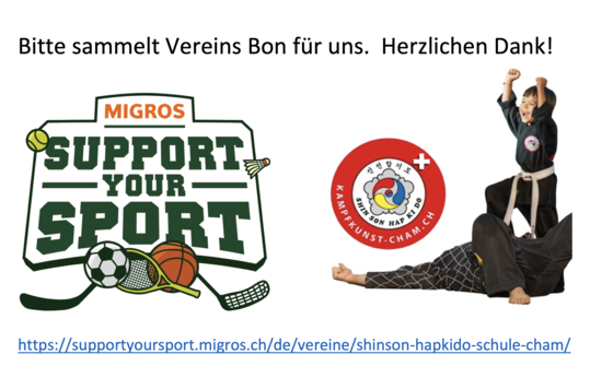 Unterstütze mit der SUPPORT YOUR SPORT AKTION unser aktuelles Chamer Shinson Hapkido Gross-Projekt im Papiere-Areal, mit den MIGROS Vereins-BON. Kamsa Hamnida. |