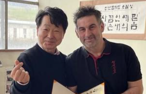 19.2.22 - Grossmeister und Shinson Hapkido Gründer Sonsanim Ko Myong überreichte anlässlich seines Besuches in der Schweiz, seinem direkten Schüler, Sabomnim Thomas Werder 6.Ki / 4.Dan die Meister-Urkunde und den Meister-Dobok. Herzliche Gratulation! |