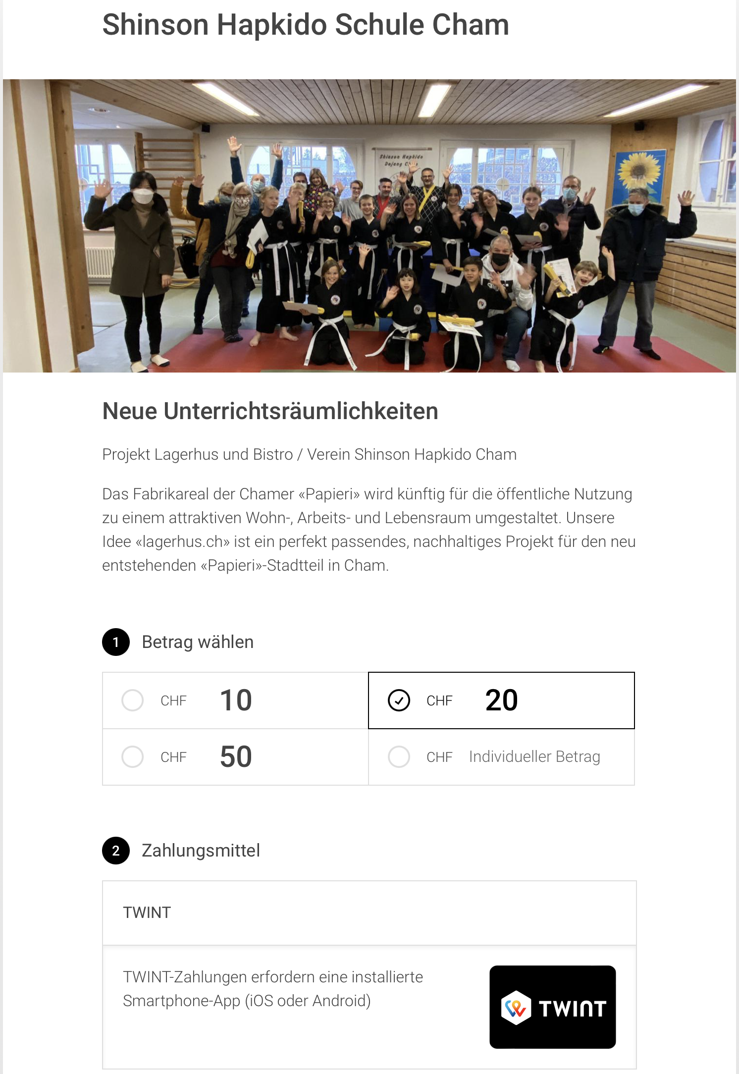 15.2.22 - Möchten Sie unser Vereins-Projekt lagerhus.ch mit einer "Support your Sport" Direktspende unterstützen?(auch anonym möglich via TWINT) |