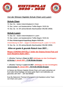 14.12.20 - Winterplan 2020-2021 für die Schule Cham & Luzern. Der Start im 2021 ist abhängig von den Covid-Regeln des BAG oder der Kantone. Danke für das Verständnis und Vertrauen. |