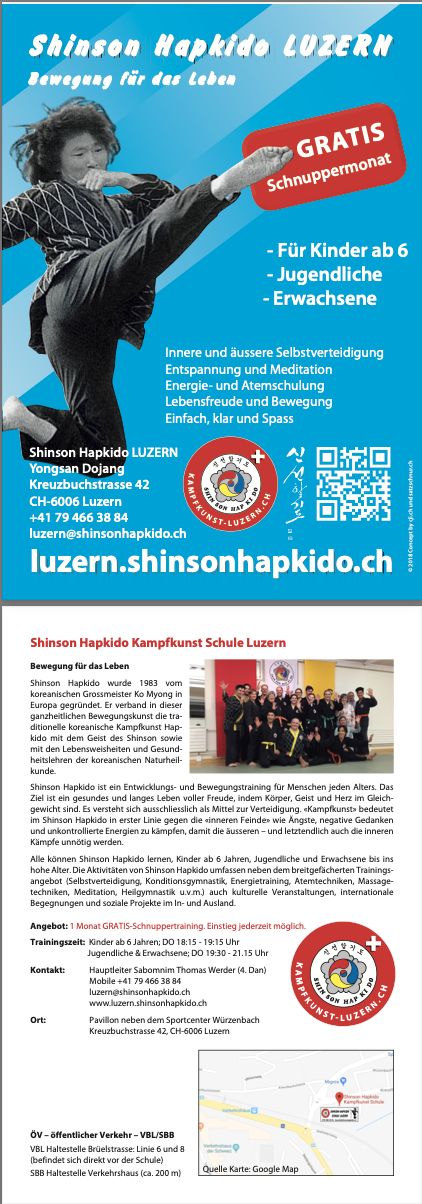 18.1.18 - Neuer Standort & Angebot der Shinson Hapkido Kampfkunstschule Luzern. |