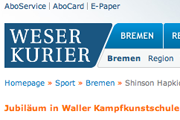 15.4.11 - Bericht im WESER KURIER - 5 Jahre Jubiläum Kampfkunst Schule Bremen - Walle. |