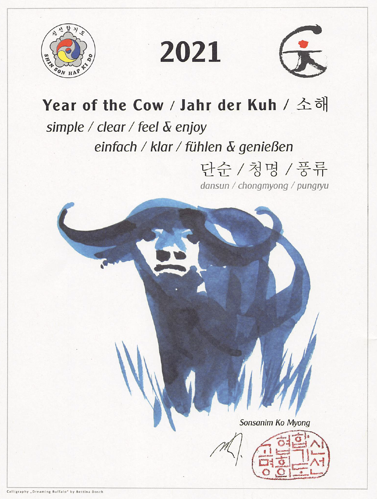Shinson Hapkido Jahres Motto 2021 im Jahr des Büffels/der Kuh |