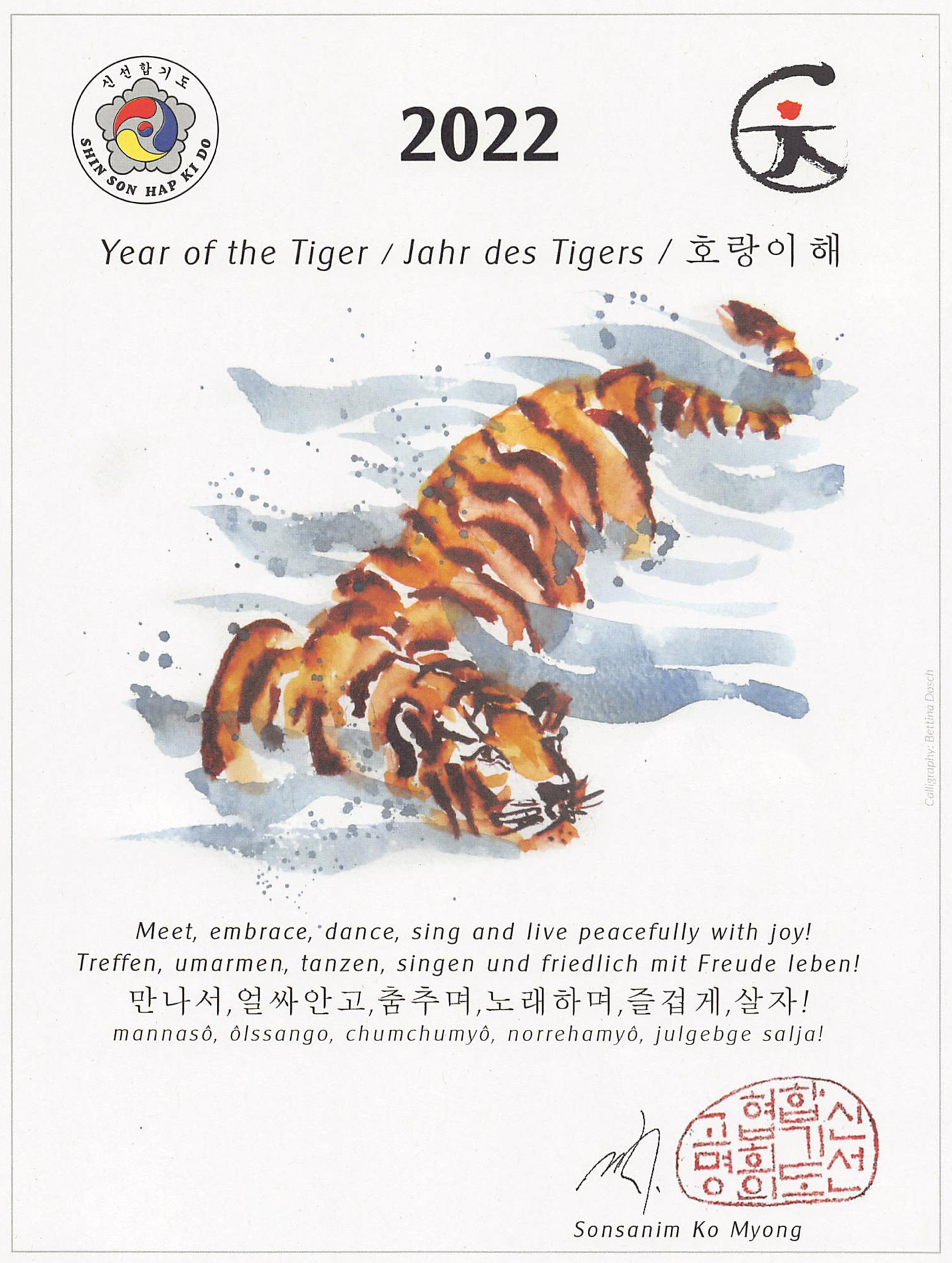 1.1.2022 - Shinson Hapkido Jahresmotto 2022, im Jahr des Wasser-Tigers (1. Feb. 2022 - 21. Jan. 2023) |