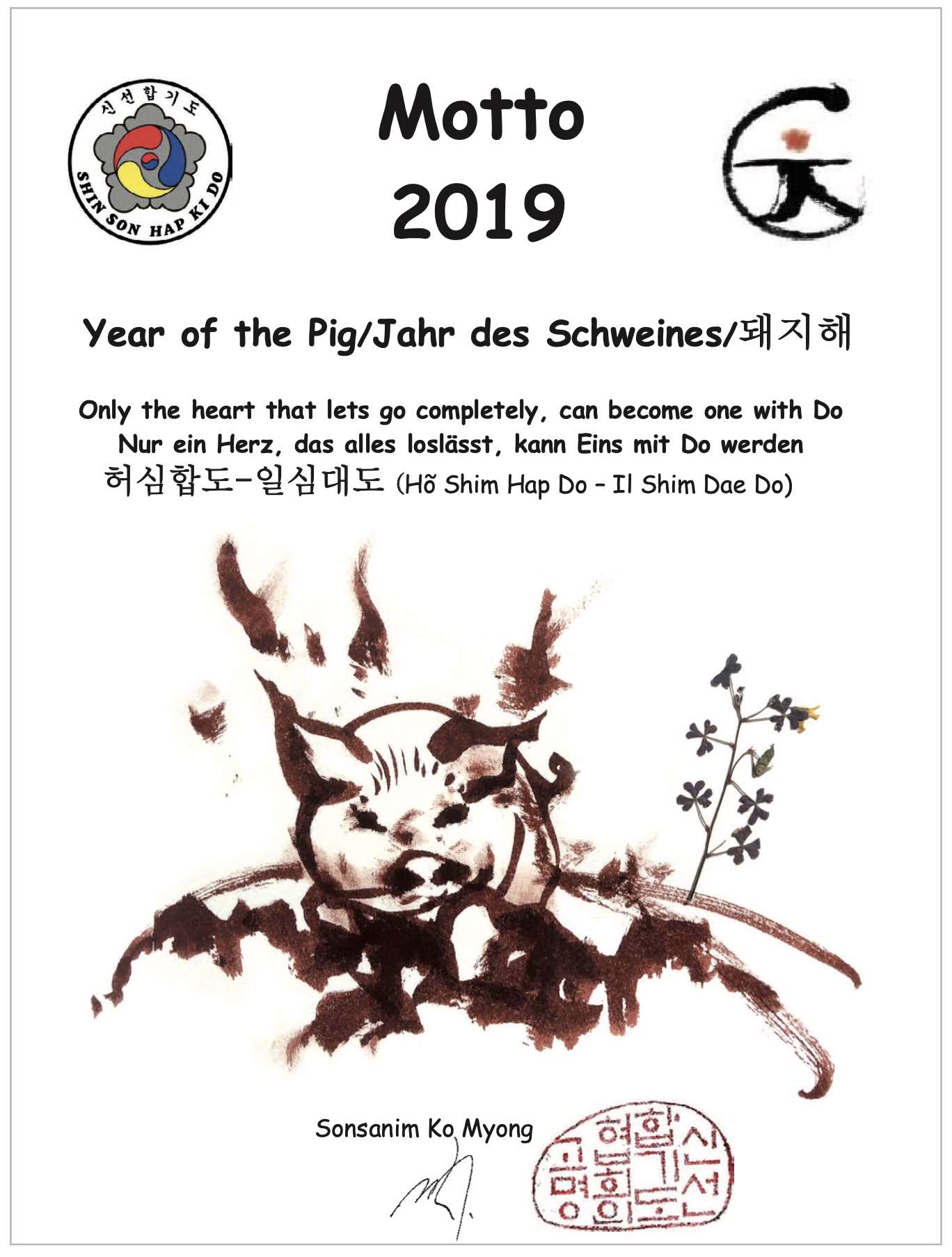 18.12.18 - Shinson Hapkido Jahresmotto 2019, im Jahr des goldenen Schweins |
