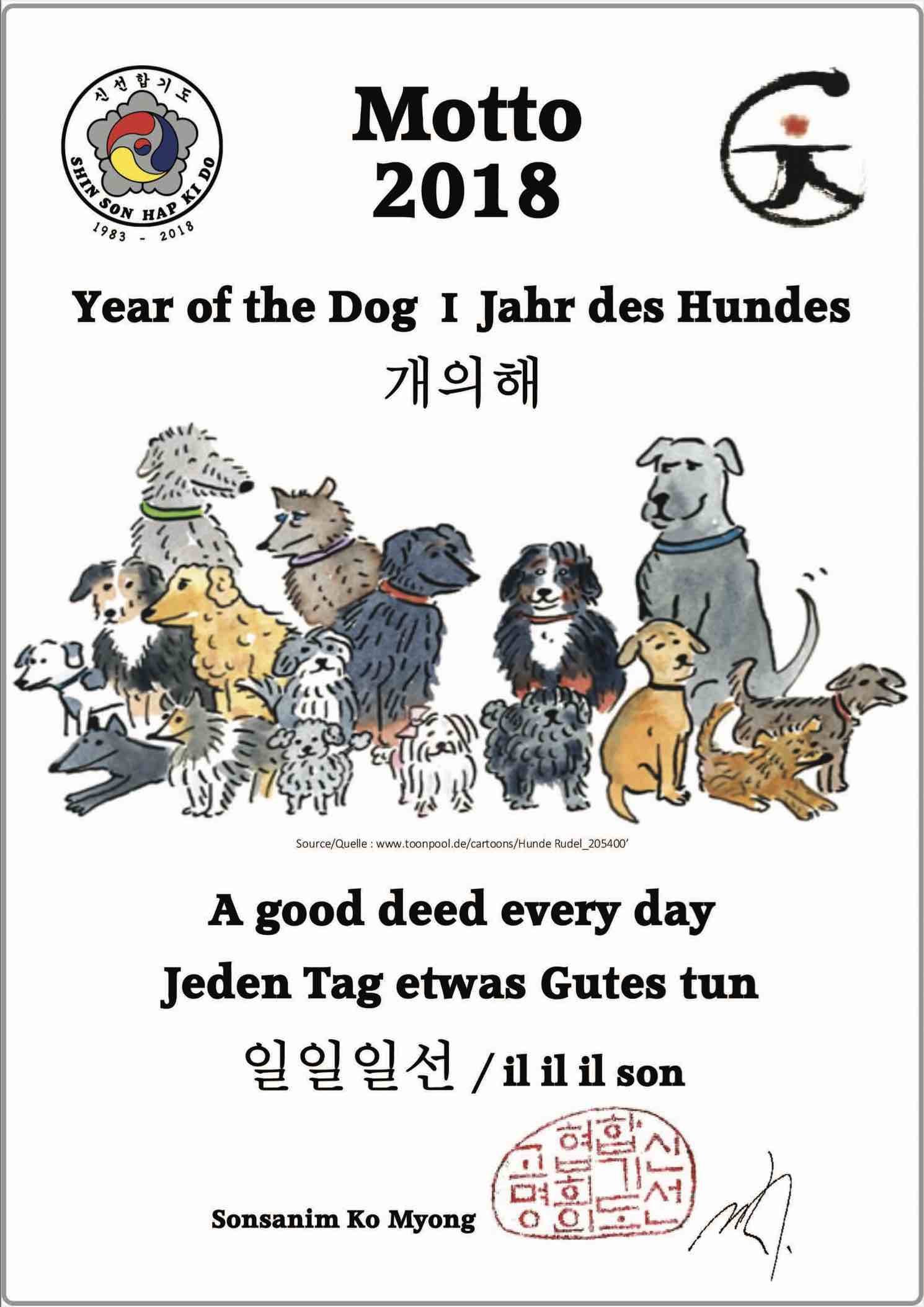 19.12.17 - Shinson Hapkido Jahresmotto 2018, im Jahr des goldenen Hundes. |