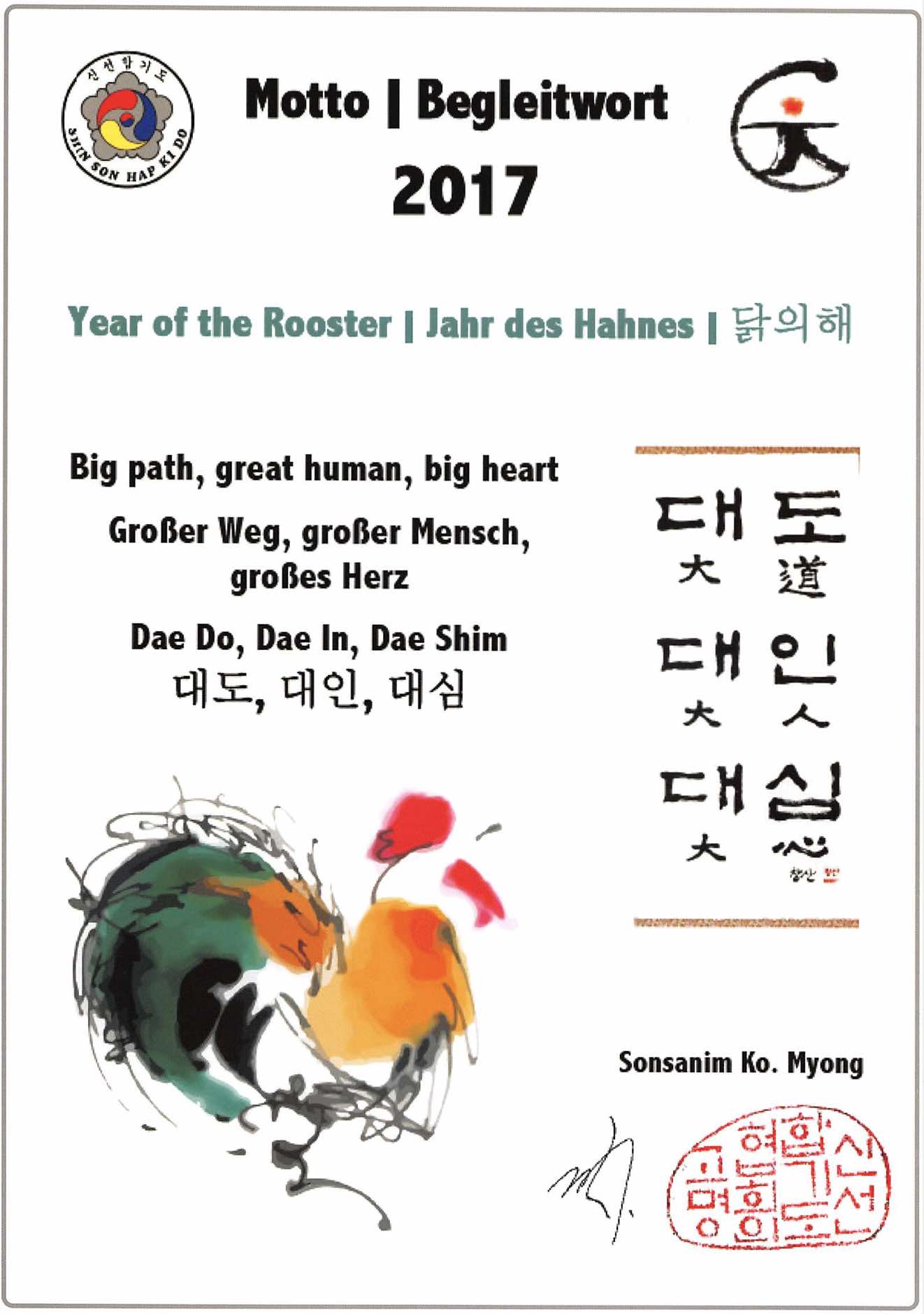 21.12.16 - Shinson Hapkido Jahresmotto 2017, im Jahr des roten Hahn |