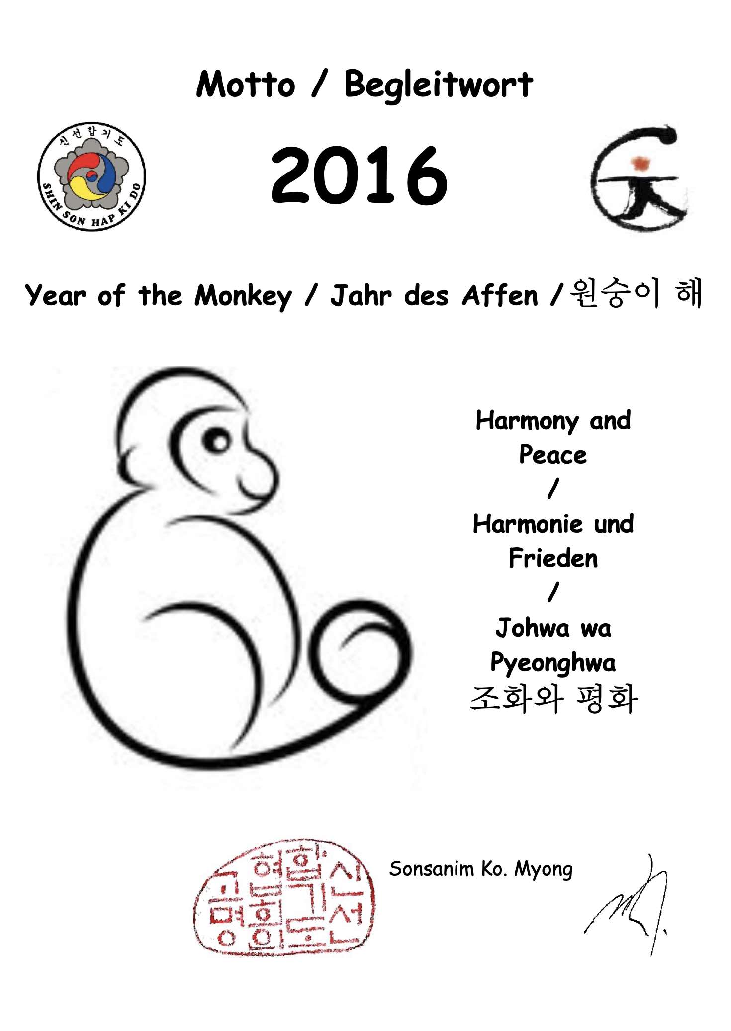 23.12.15 - Shinson Hapkido Jahresmotto 2016, im Jahr des roten Affen (8.2.2016 - 27.1.2017) |