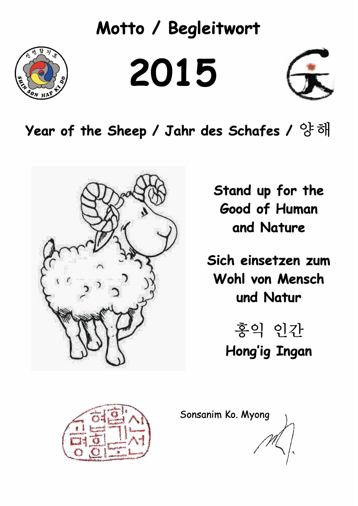 1.1.15 - Shinson Hapkido Jahresmotto 2015, im Jahr des Schafes (19.2.2015 - 7.2.2016) |