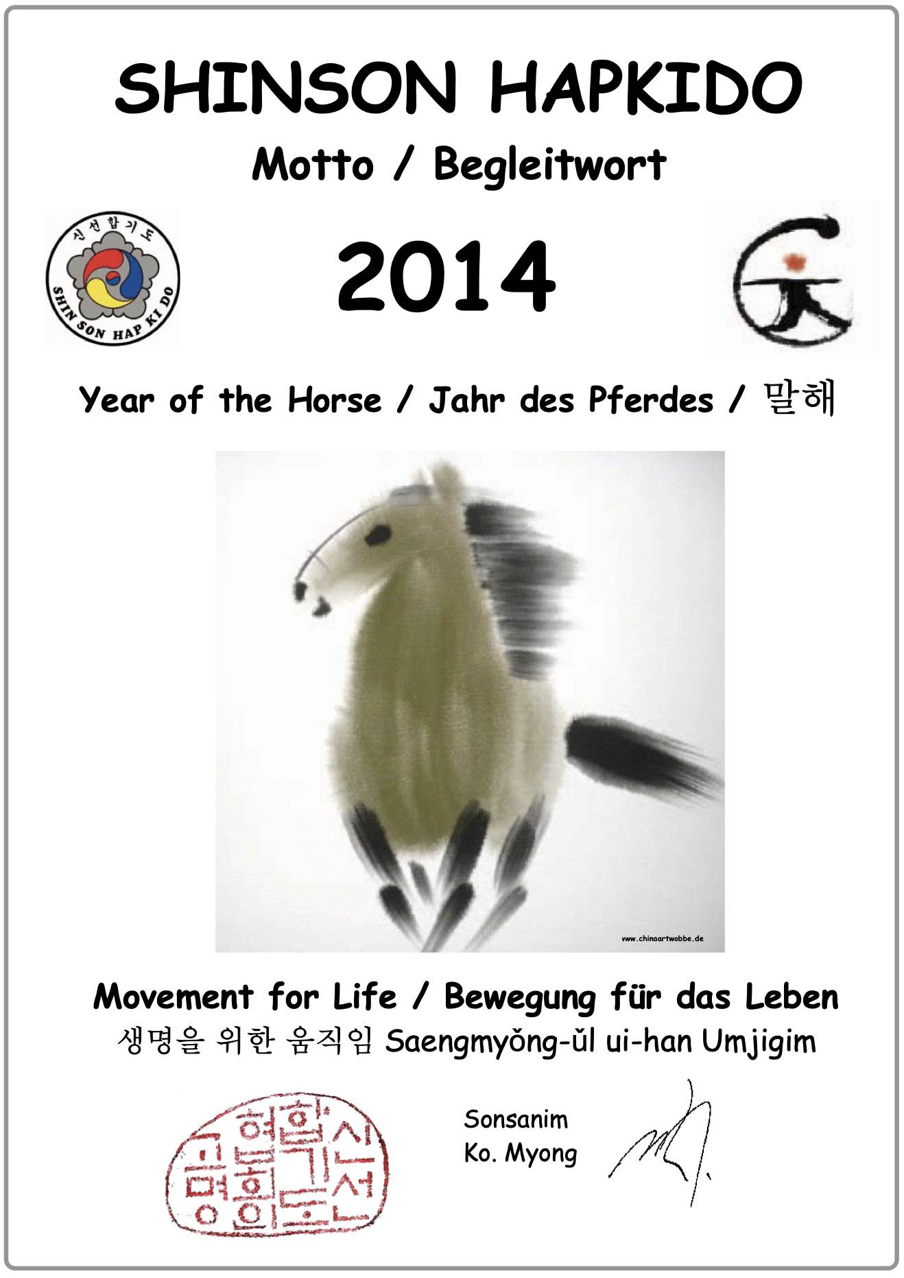31.1.14 - Shinson Hapkido Jahresmotto 2014, im Jahr des Pferdes |