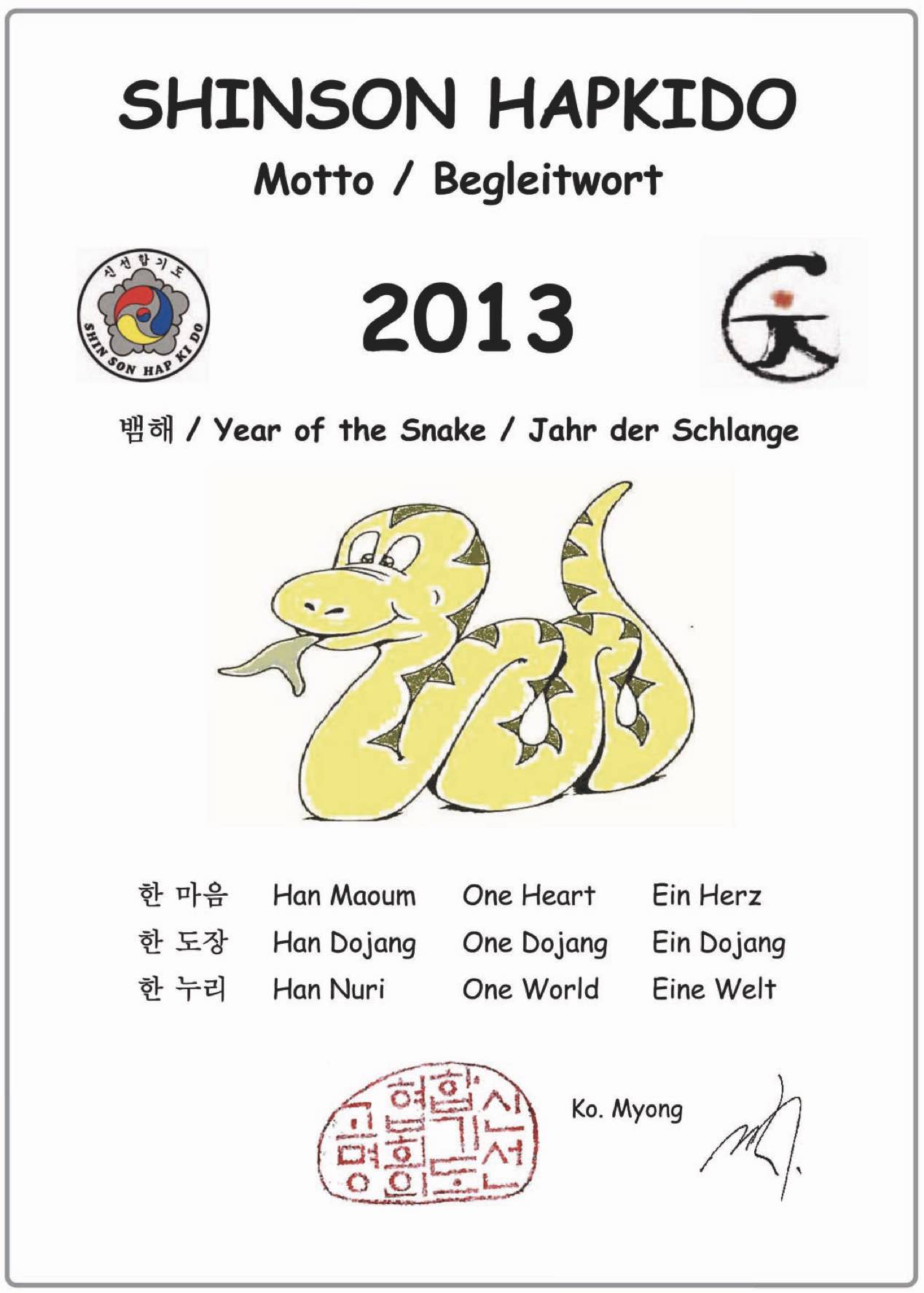 17.12.12 - Shinson Hapkido Jahresmotto 2013, im Jahr der Schlange |