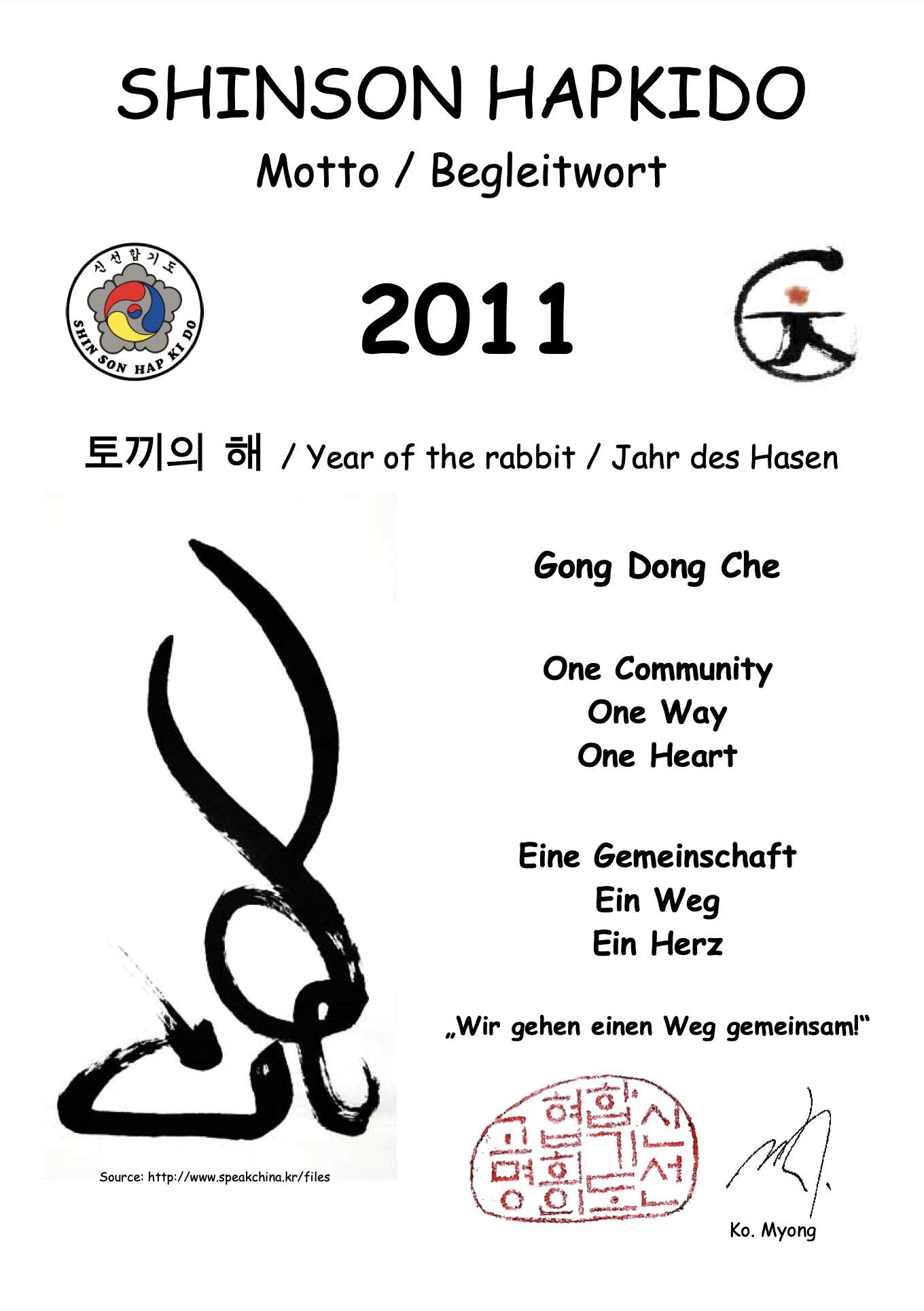 3.2.11 - Shinson Hapkido Jahresmotto 2011, im Jahr des Hasen |