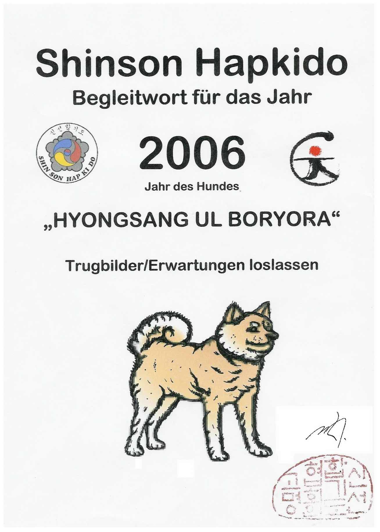 29.1.06 - Shinson Hapkido Jahresmotto 2006, im Jahr des Hundes |