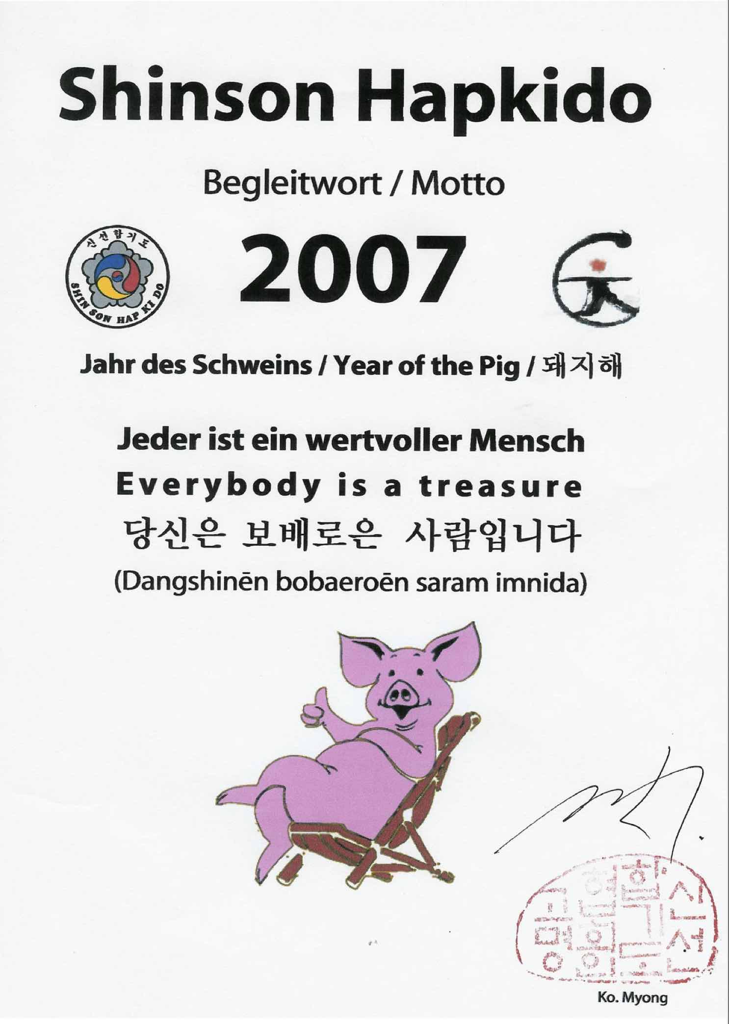 18.2.07 - Shinson Hapkido Jahresmotto 2007, im Jahr des Schweins