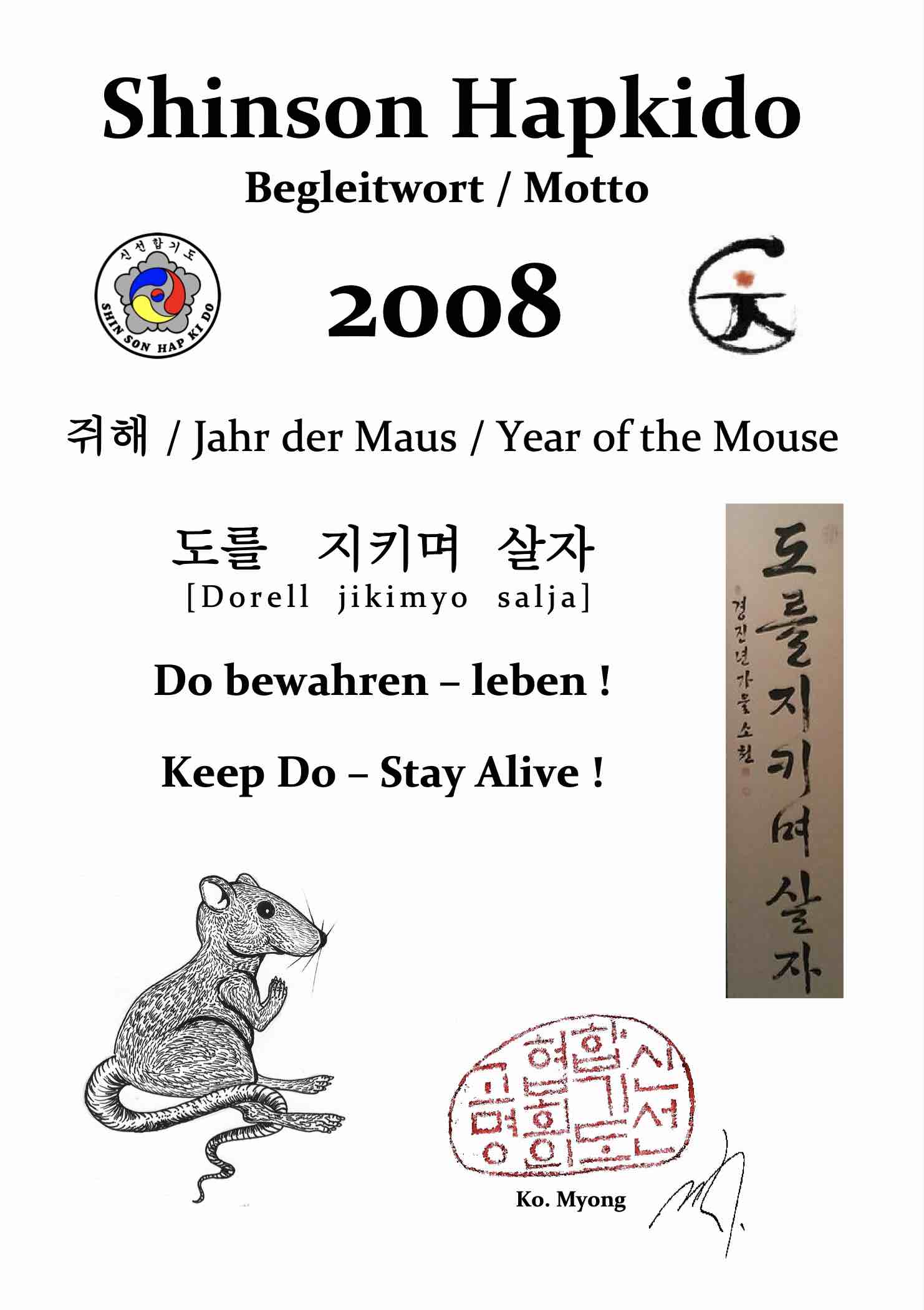 7.2.08 - Shinson Hapkido Jahresmotto 2008, im Jahr der Maus/Ratte |