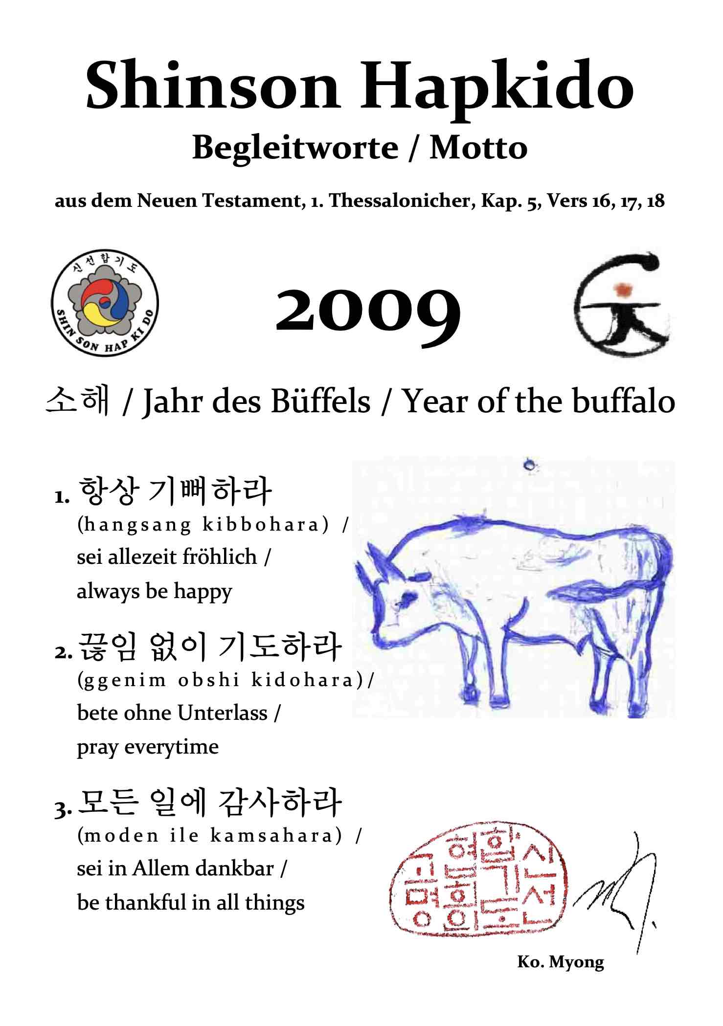 26.1.09 - Shinson Hapkido Jahresmotto 2009, im Jahr der Kuh/des Büffels |