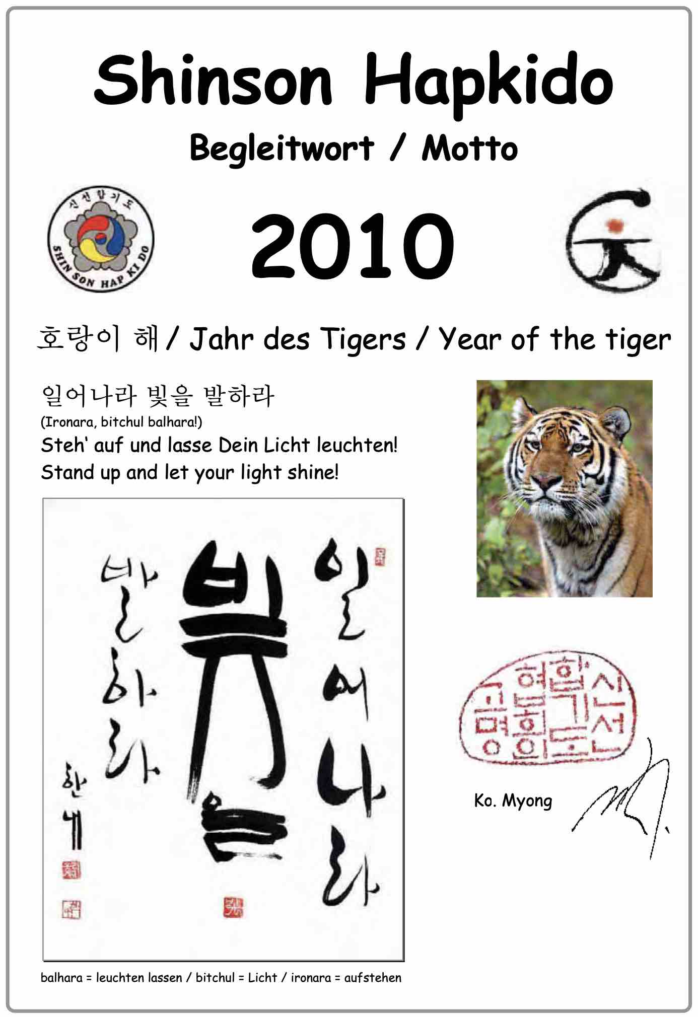 20.12.09 - Shinson Hapkido Jahresmotto 2010, im Jahr des Tigers |