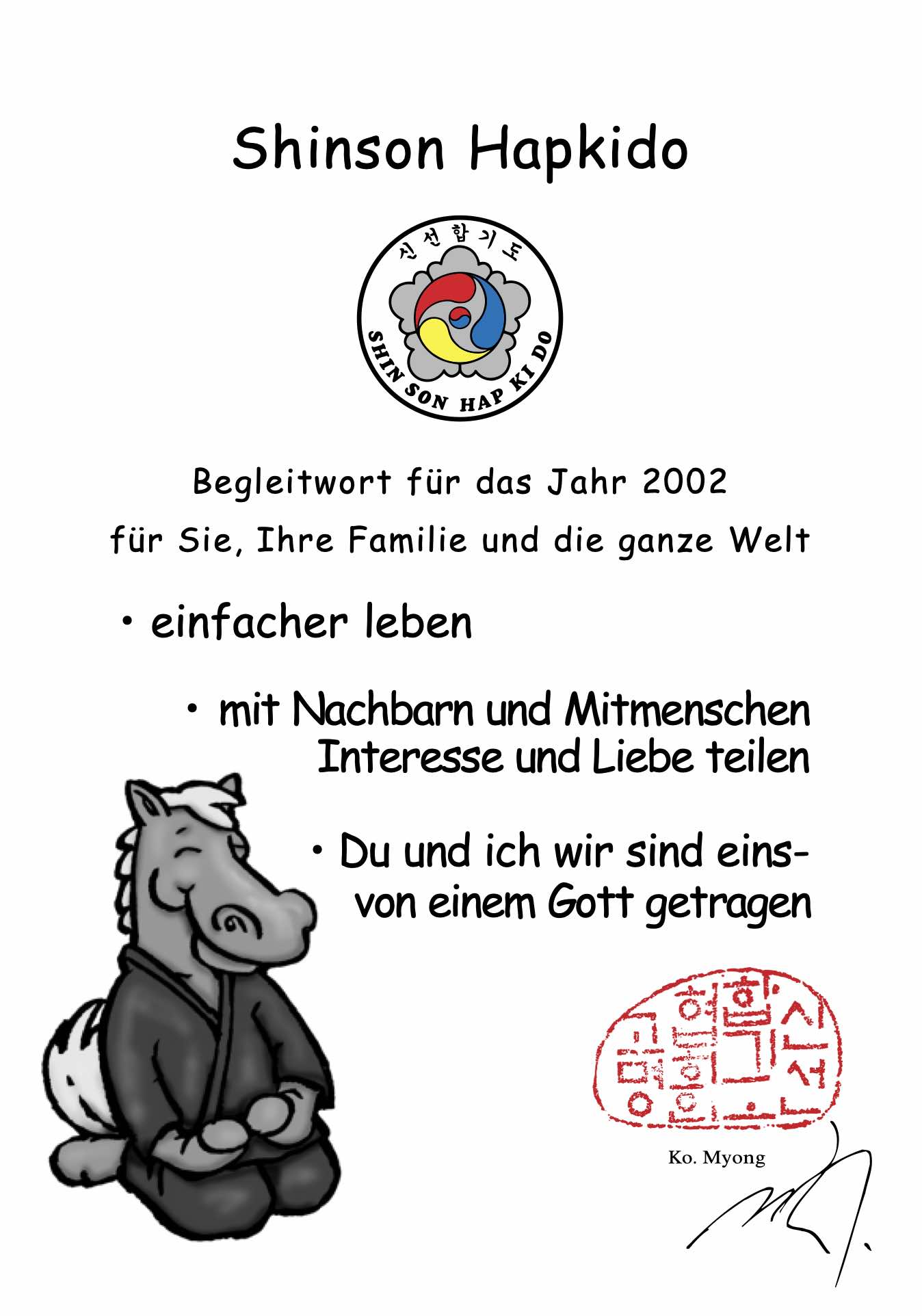 11.2.02 - Shinson Hapkido Jahresmotto 2002, im Jahr des Pferdes |