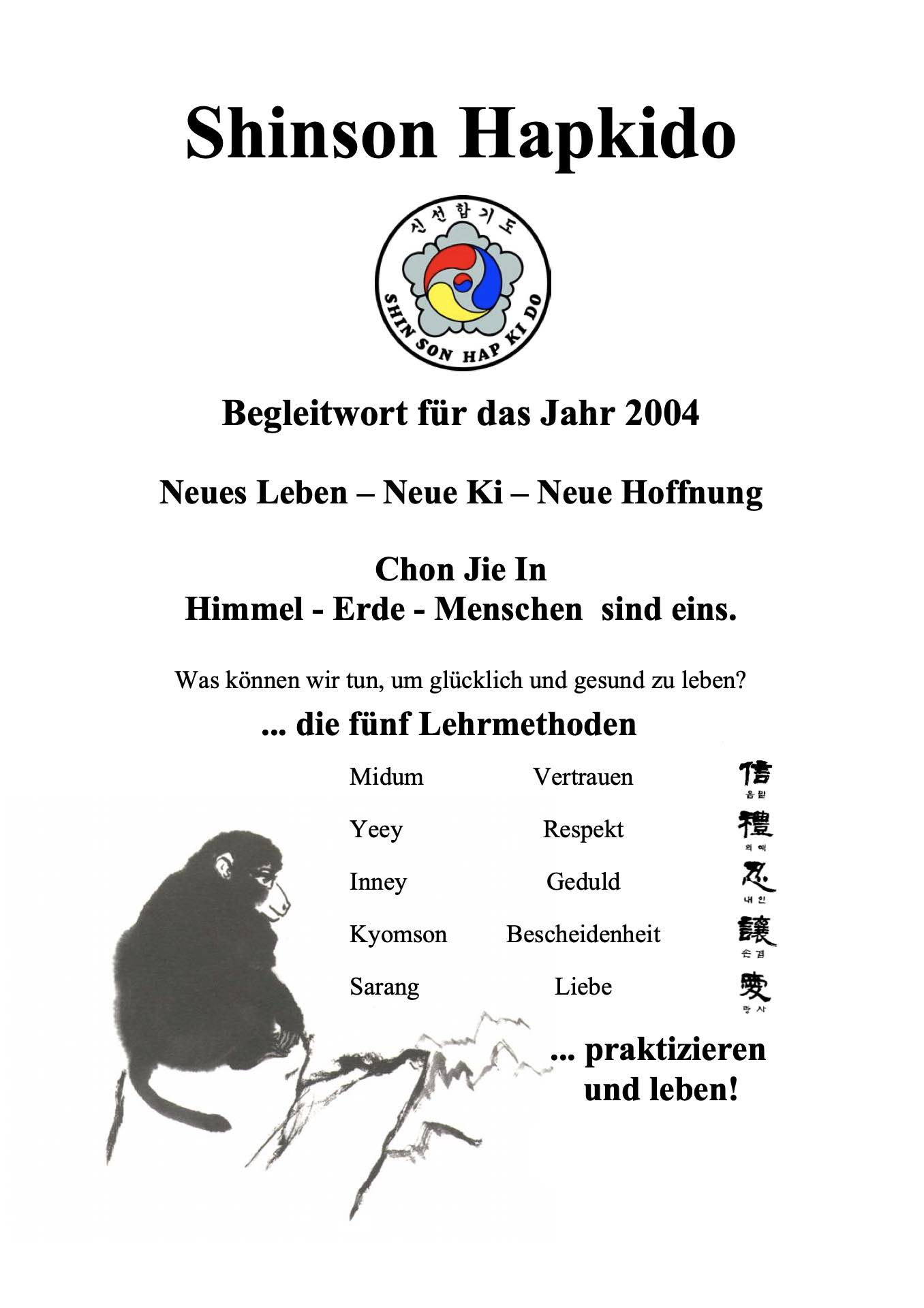 22.1.04 - Shinson Hapkido Jahresmotto 2004, im Jahr des Affen |