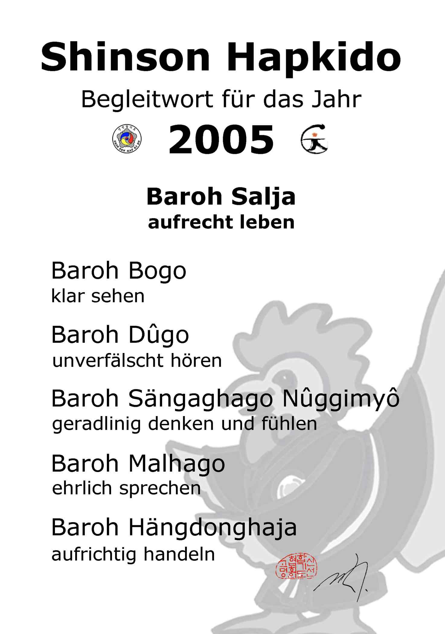 9.2.05 - Shinson Hapkido Jahresmotto 2005, im Jahr des Hahn